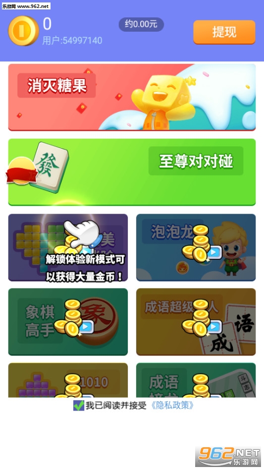 《消灭糖果红包版》是一款玩游戏赚钱app软件,软件中玩家可以记性消除游戏来获得红包奖励,突破的关卡越多获得的金币红包就越多,金币可以直接提现,软件中还有着丰富的游戏供你选择,一边玩一边赚钱。赶快下载体验吧!