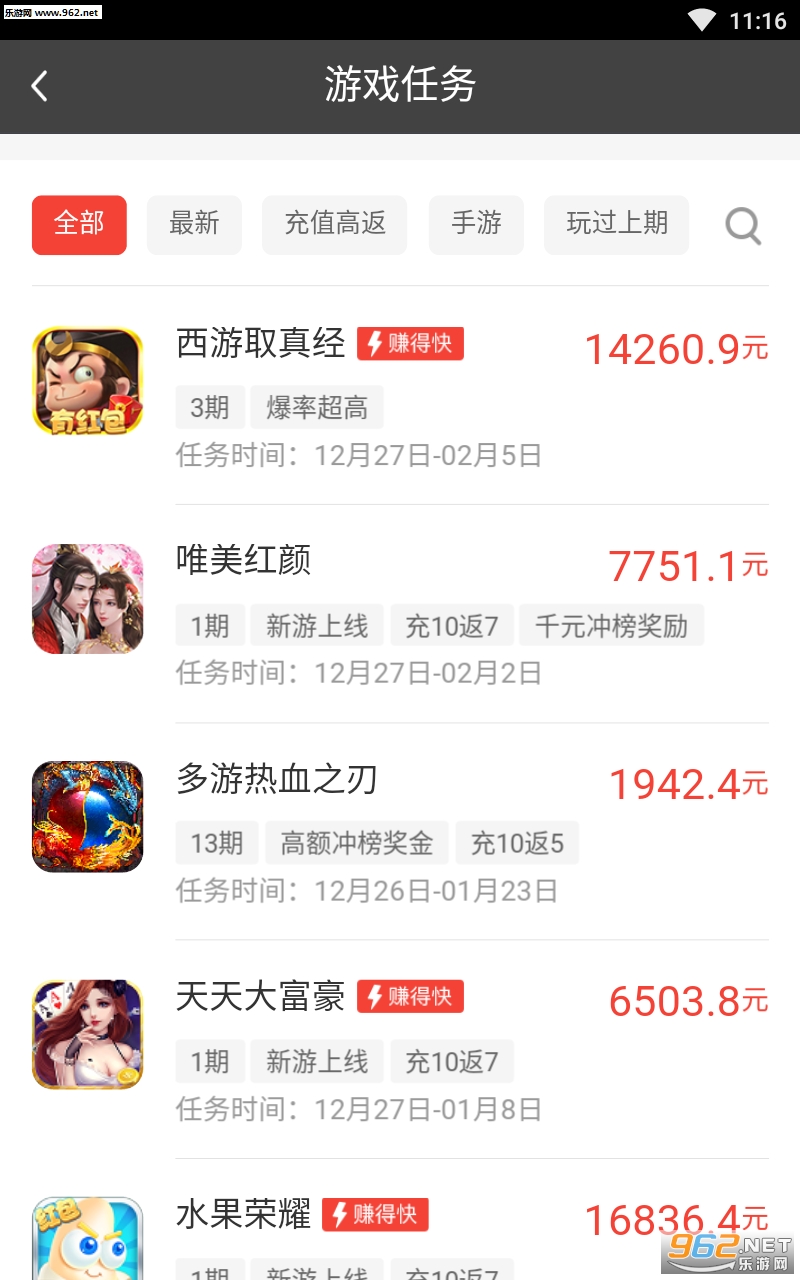 上千个任务,不同玩法,每天都有新任务上架,无论是游戏赚钱任务、试玩任务、好友任务等,总之玩不停、赚不停!