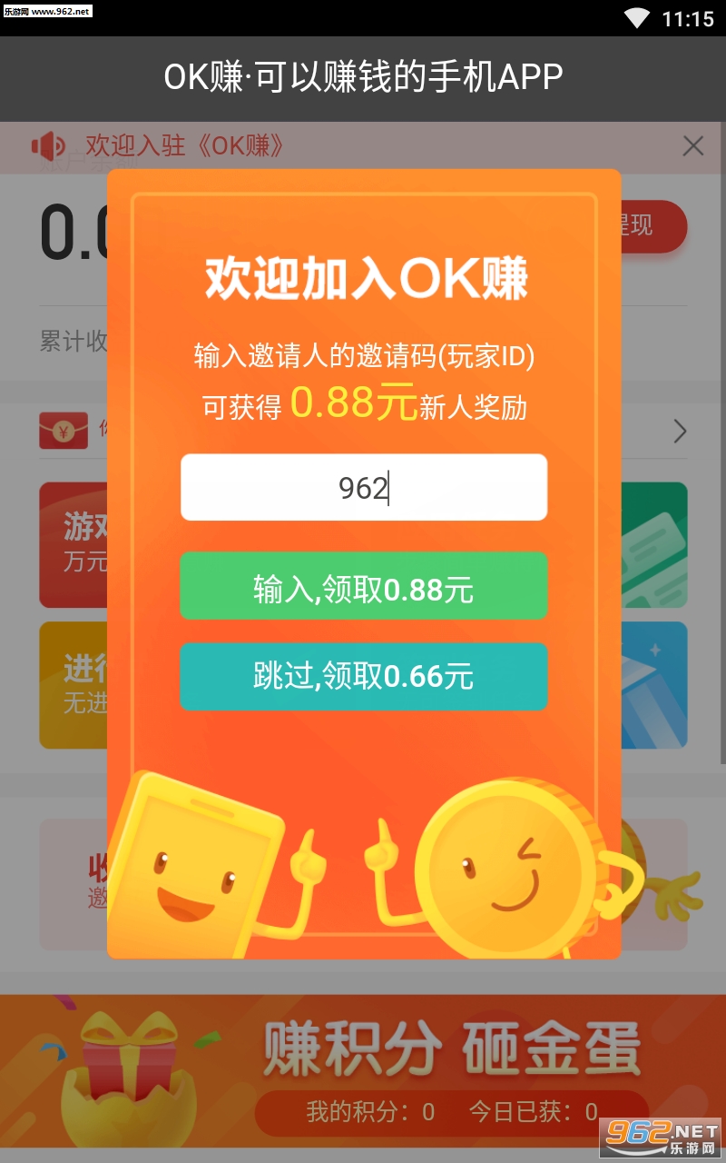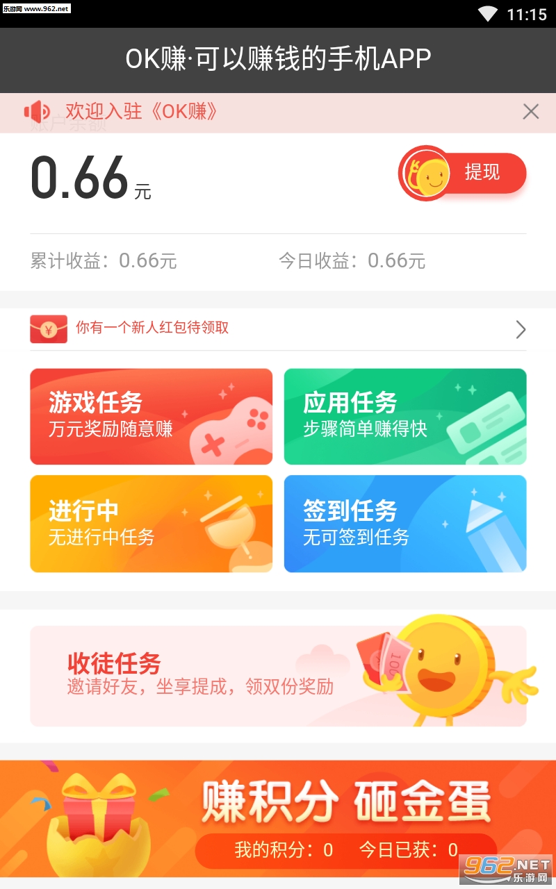 OK赚,是一款真正的玩游戏就能赚钱的APP平台;一款随时随地都能游戏娱乐并赚钱的手机赚钱APP。除了游戏赚钱外,用户还可以下载应用以及收徒来获得奖励!OK赚app,任务多、奖励多、注册就送钱,提现秒到账!