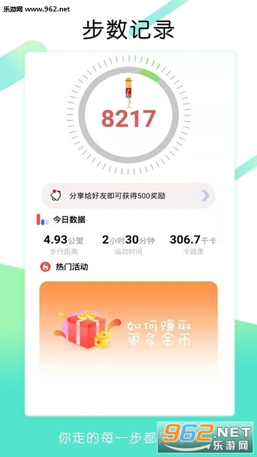 进入步天天走路赚钱上传今日步数,点击同步后,每一步都可以领红包,走的越多,赚的越多,一边走路一边赚,有钱的生活走出来!