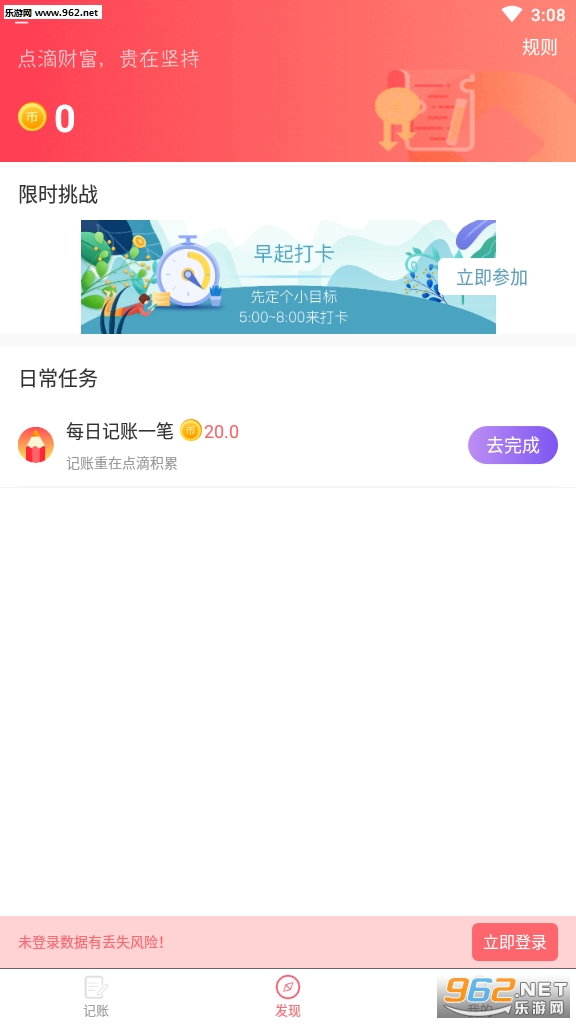 《记账有钱app》是一款非常给力的手机记账赚钱平台,这款软件专为喜欢网赚的小伙伴们设计,通过每天的记录开支来获得收益,简洁的记账流程,清晰的图表展示,海量金币等你来拿,感兴趣快来下载体验吧!