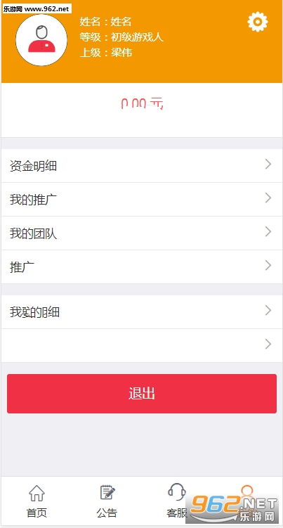 3)注册即可成为游戏推广人,团队消费累计达到一定数额系统自动会升级推广等级,等级越高,收益越高。