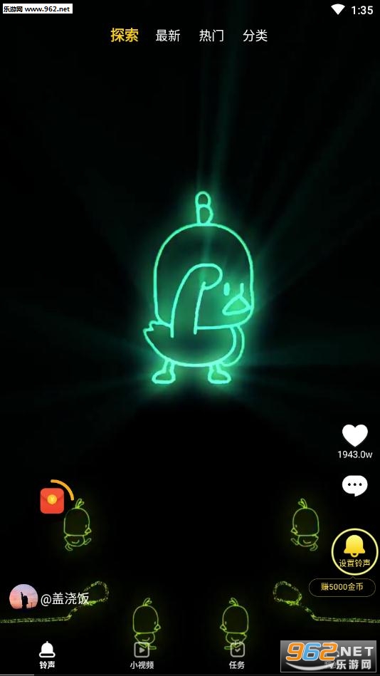 《趣铃声手机版》是一款功能全面的手机铃声设置类软件,平台拥有海量的铃声让你选择,各种类型的曲目自由使用,还有搞笑的视频让你在线观看,更重要的是大家还能通过完成里面的小任务来赚钱哦!