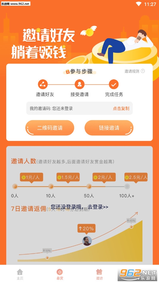 2.邀请好友一起赚钱,好友每次提现自己都会获得20%的收益,每天打开手机都会有钱进账!