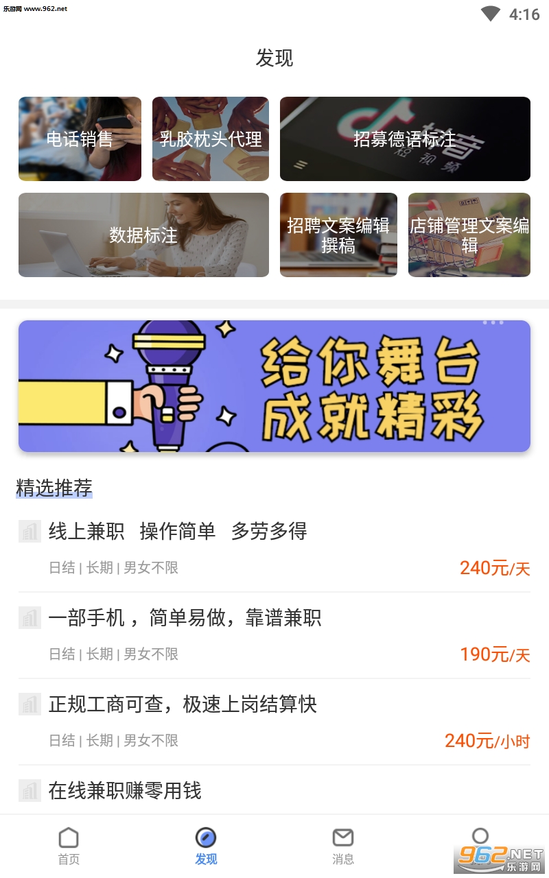 【海量工作,领域齐全】为你提供多样选择。每日提供上千岗位,遍及广州、深圳、上海等热门城市。家教,礼仪,模特,导游,淘宝刷单,美团外卖、饿了么配送员,网红直播,麦当劳服务员,明星助理,健身教练,翻译,设计,策划,文案编辑,保安,京东快递员等职位应有尽有。