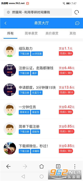 平台任务佣金基本都是0.5元起步 任务流程操作简单 基本都是下载注册任务 高额佣金奖励需要做信用卡任务