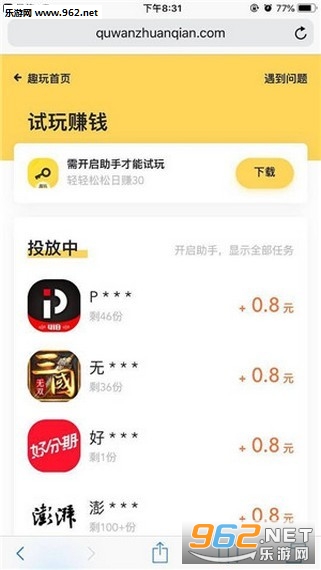 《趣玩赚钱app》这是一款非常nice的试玩类网赚手机app平台,使用起来非常的方便轻松,免费注册即可领取各种试玩任务,按照平台要求完整的完成试玩任务就能赚钱,并且收益还非常可观,让你轻轻松松在手机上赚钱。