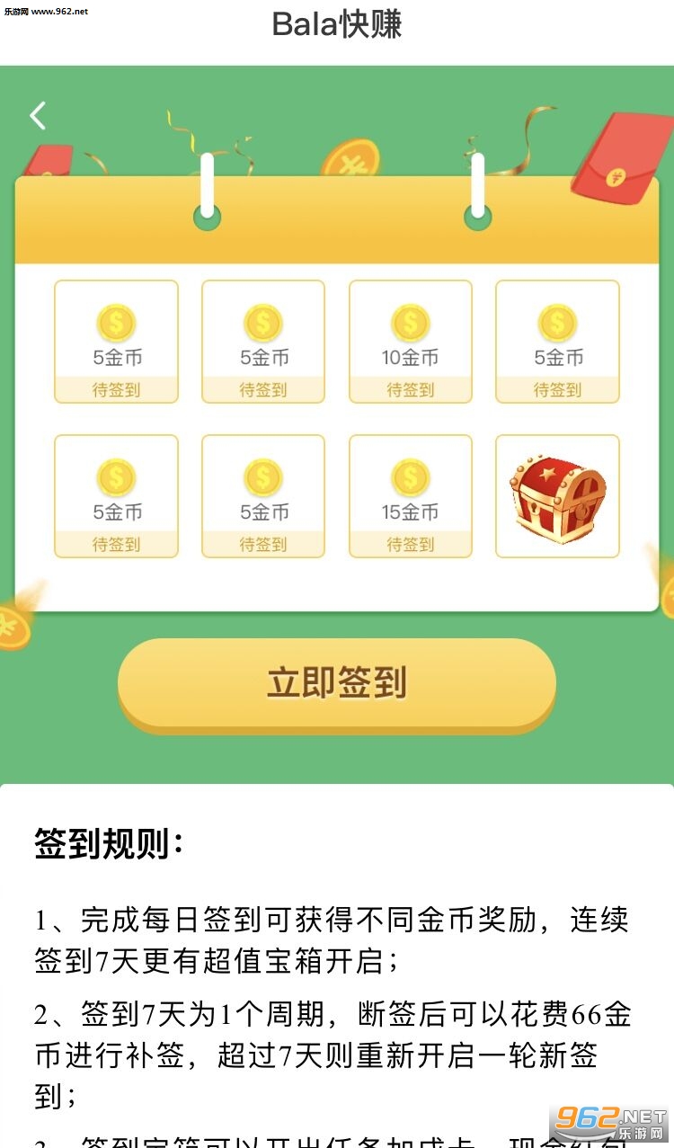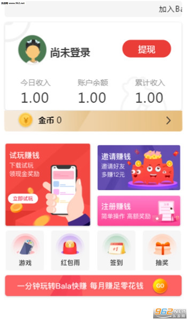 《Bala快赚试玩软件》是一款最新推出的试玩赚钱的平台,Bala快赚app中有着新手任务、每日任务等众多的任务可以领取,朋友们需要按照任务的要求去关注一些平台,去试玩游戏和软件,每天都能领取大量的红包。