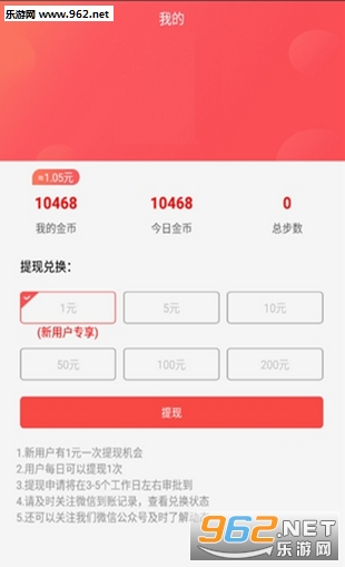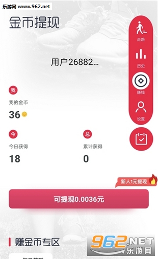《乐步赚钱安卓版》是可以让用户通过走路来赚钱的软件,精确的计步规则,实时兑现的功能同步上线,每天可以清楚的看到步数兑换为现金,一元提现,轻松快捷,赚钱就是这么简单。