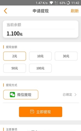 提现门槛低,首次满2元即可申请提现,后续10元起,24小时内到账