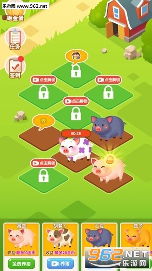 让你的小猪成长为更加可爱有趣的内容吧,升级有趣的小猪赚到更多。