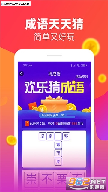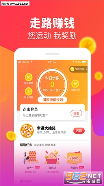 【赚】取金币。更有小游戏、大转盘、猜成语等,运动累了玩一玩,金币送不停。