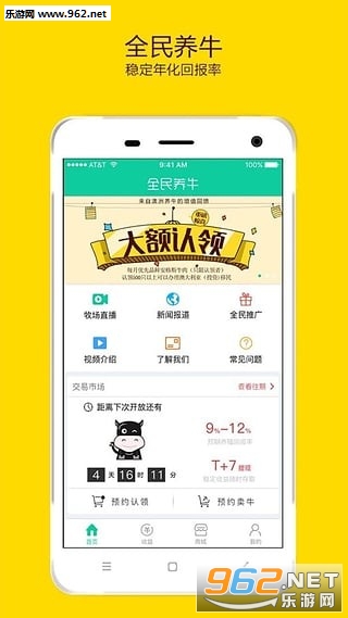 《全民养牛app》是一款非常好用的网赚类软件,以养牛为核心,用户能够加入这个互联网养牛平台,直接用手机进行养殖,所有的牛都托管在澳洲知名牧场,你只需要成为牧场主就可以分红,还能够全天直播观看你的牧场哦。有需求的话就快来下载吧!