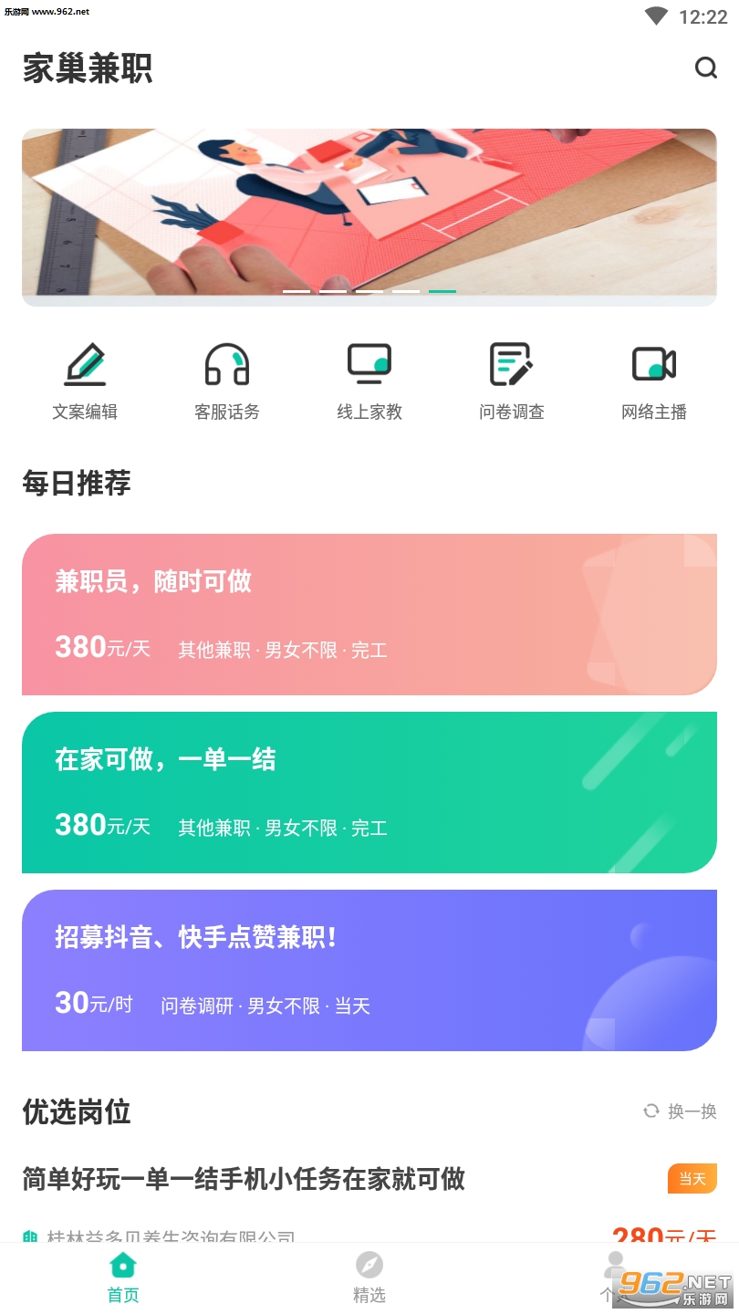 家巢兼职是招聘工作的服务平台。这里有许多优质可靠的企业落户,就业需求丰富。根据用户的需求和浏览习惯,智能推荐感兴趣的职位,支持在线交流和沟通,非常方便。欢迎有需要的朋友下载使用。