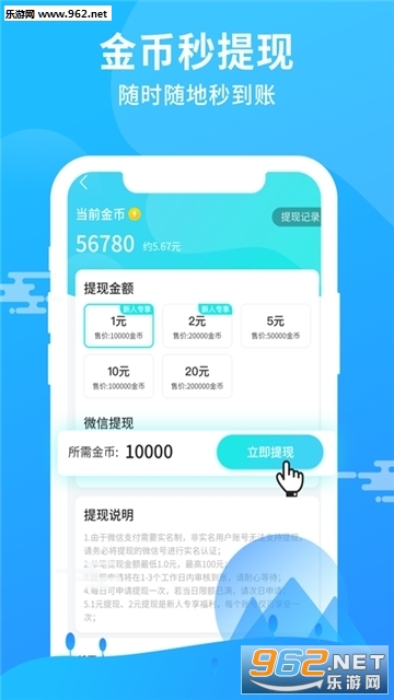 3、金币秒提现,随时到账