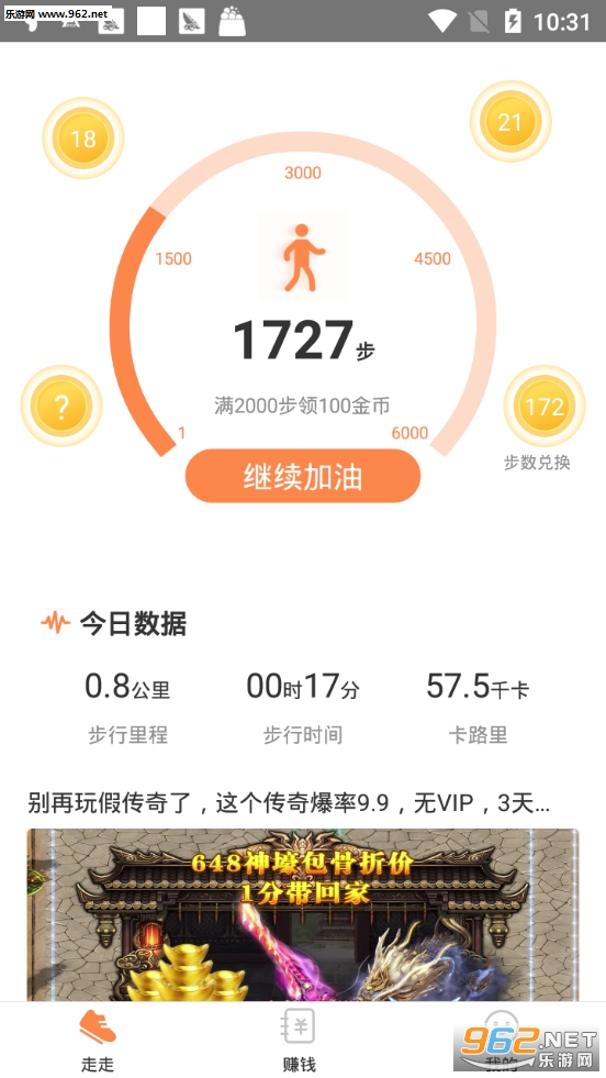 1、大量的运动方式,每天走路就能得金币,走得多赚得多