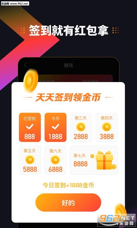 【每日签到】连续签到7天为一个周期,连续签到天数越多获得金币越多。