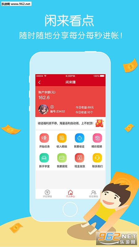 精选海量资讯,你中意的内容我们给你推送,把握碎片时间,轻松阅读赚零花钱;