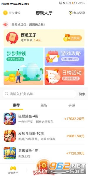 2、玩游戏赚钱,任务单价最低0.45元起,每天都有大量游戏赚钱任务等你来做