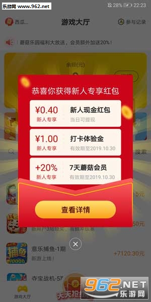 蘑菇乐园,一款玩手机游戏轻松赚钱的兼职赚钱APP。在蘑菇乐园赚钱送您三大福利,新人送你7天蘑菇会员奖励加成20%,新人专享0.4元现金红包,打卡体验金1元,挑战成功瓜分奖励,1元即可提现。