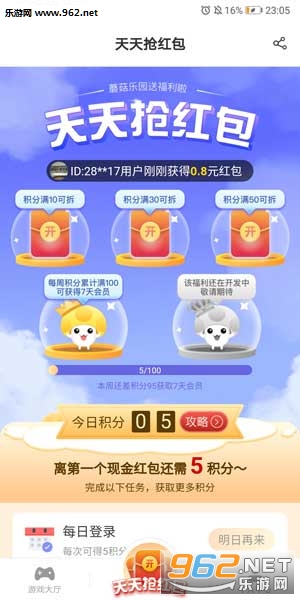 《蘑菇乐园手机版》是一款可以通过试玩游戏来赚钱的软件,蘑菇乐园的游戏大厅中有着众多游戏,朋友们可以接取任务然后去试玩一些游戏,可以领取一定的红包,试玩的越多奖励也就越多。
