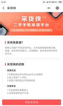 与转转平台当前采取的“C2C模式为主+C2B2C”模式不同,“采货侠”平台是B2B模式,初期会以二手手机、3C数码产品切入,通过提供居间服务、连接源头供给,将优质货品通过服务输送给有需求的下游零售门店,缩短流通链路。
