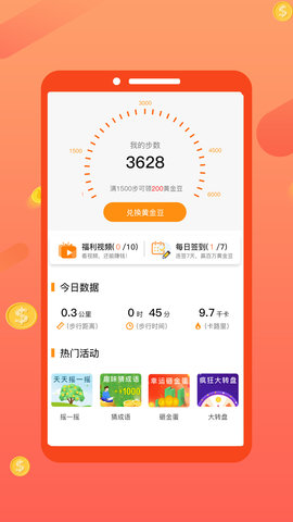1、只要每天运动步数达到标准,广大用户就能够领取大量金币;