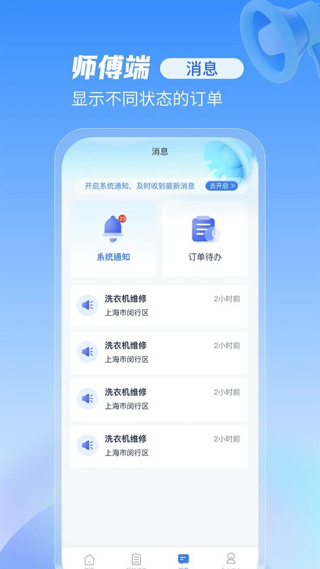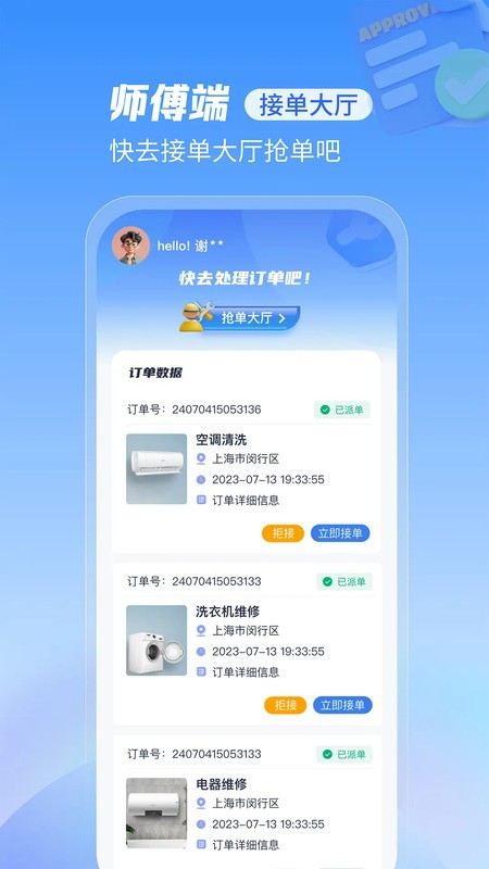 发布了众多的上门维修订单,可以随时接到更多的上门维修订单;