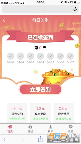 2、连续签到3天奖励0.1元,签到5天0.3元,签到7天0.5元