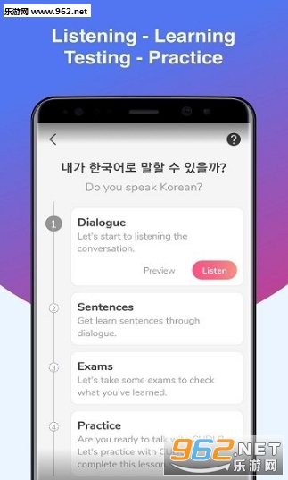 《韩语会话练习app》是一款韩语学习app,教你掌握韩语的发音、最简单的语法以及一些日常用语,让你三个月就可以基本掌握韩语。