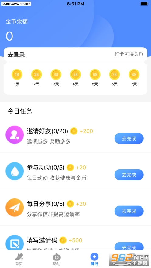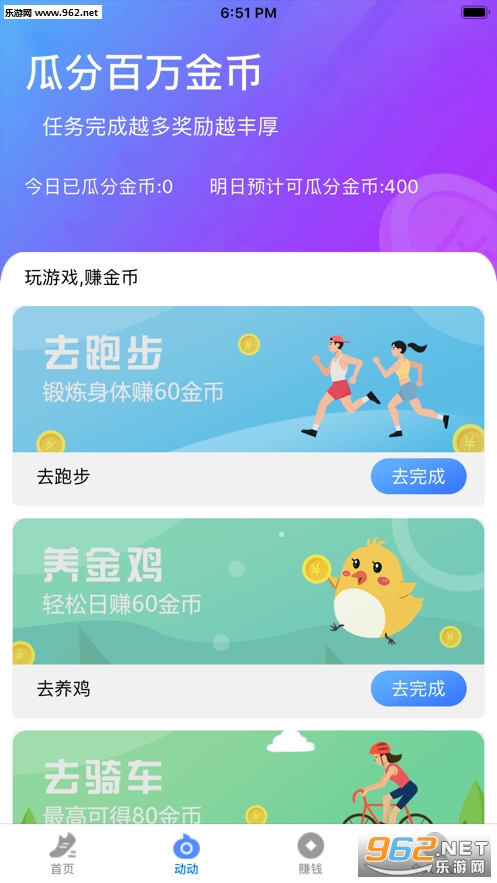 非常好用的赚钱软件,除了计步之外还能骑车或者养鸡获取金币,每天都有丰富的任务,完成之后就能获取各种奖励了,用起来很方便哦。