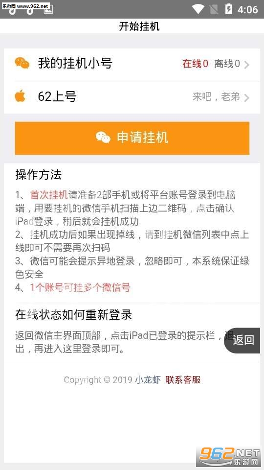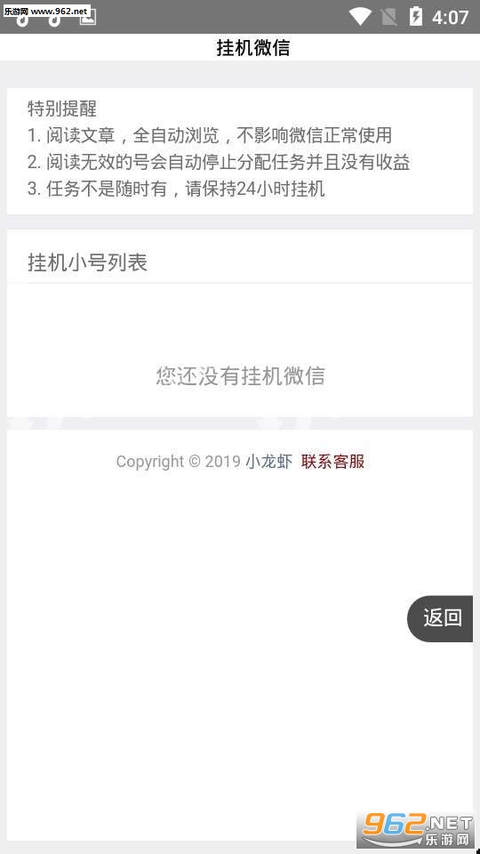 《小龙虾挂机》是一款非常好用的手机挂机赚钱平台,这款软件没有任何复杂的操作,用户只需要按照要求注册成为平台的会员即可享受挂机赚钱的快乐,0门槛0投资,1元即可提现,感兴趣的老哥欢迎来962下载体验吧!