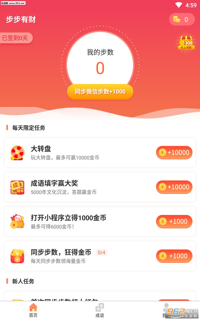 随时同步步数,步数可以兑换成金币提现,步数越多,金币越多。首次同步将获赠1000高额金币。每走一步都是健康,每走一步都是财富。