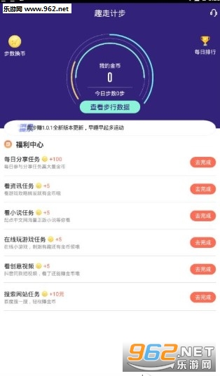 趣走步数是一款鼓励你每天多走路跑步健身的APP,多种活动助你每天多多锻炼身体,步数兑换金币还能兑换小礼品哦。不知不觉身体好了,礼物换起来美滋滋!
