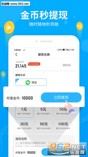 5、金币提现秒到账,效率就是这么高