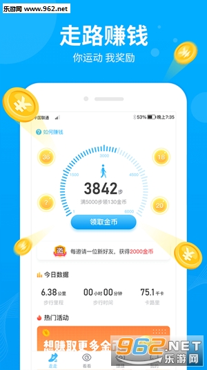 1、轻松计步,步数换金币