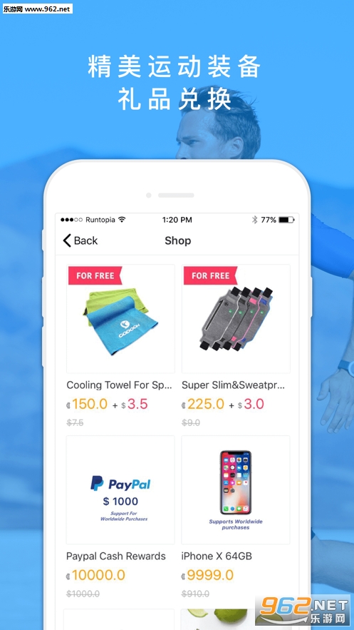 蓝牙连接,配有独特的Runtopia智能跑鞋和其他运动装备。