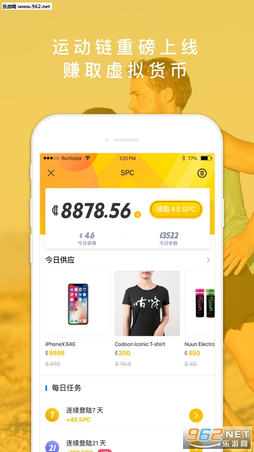 实时计步器,将步骤转换为SPC货币,可兑换成奖品,运动和健身套件,服务和体验。