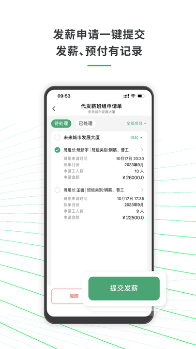 3、全新的发薪流程让发薪更方便,提高效率,发薪更真实,让工人满意;