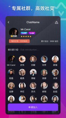 《克拉社交app》是一款真人社交app,可以轻松与他人互动,聊天唱歌,还可以玩游戏,真心话大冒险,让你们彼此距离更近。
