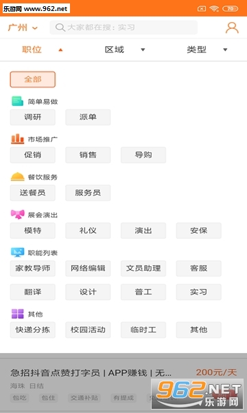 3、优质热门兼职实习分类,帮助你快速找到满意的岗位