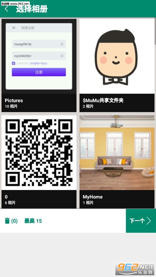 -从图库中选择多张照片,然后从1到15张照片中选择布局形状。
