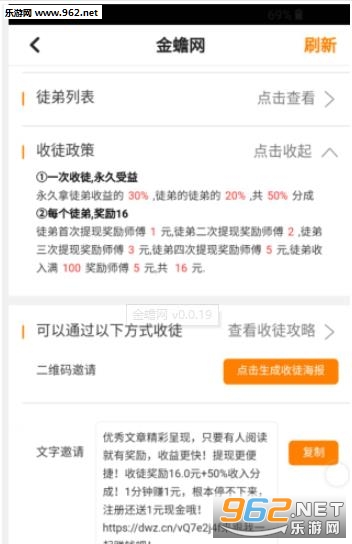 金蟾网是一款转发文章赚钱软件,下载金蟾网APP,有钱花,优秀文章精彩呈现,只要有人阅读就有奖励,收益更快!提现更便捷!收徒奖励16.0元+50%收入分成!1分钟赚1元,根本停不下来,注册还送1元现金哦!