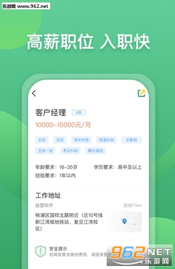 【职位真,离家近】严格的职位审核机制保证职位更真实,基于定位推荐附近的职位!