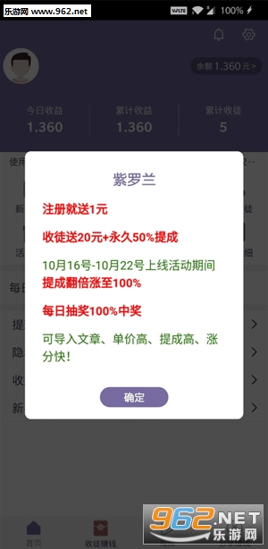 紫罗兰app,最新上线转发文章平台,转发支持群、圈、友。平台拥有丰富的新闻资讯内容,实时更新,用户阅读转发即可获取收益,并还可以邀请好友收徒获取更多奖励,感兴趣的朋友欢迎前来下载使用。