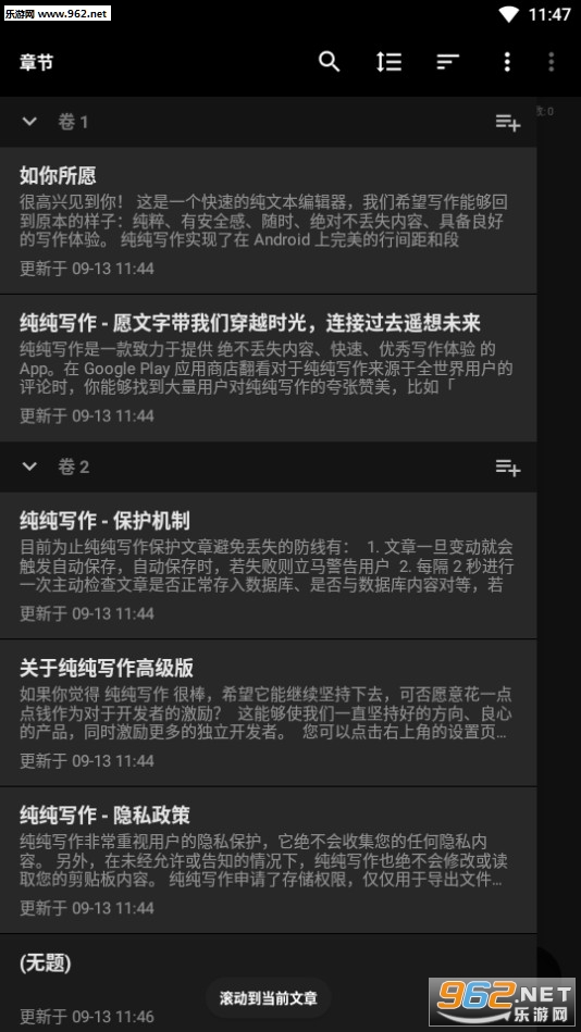 《纯纯写作》是一款简约清新风格的写作软件,软件中有着非常多的方便的功能,让你的掌上写作更加流畅自如,因为有些空闲的时间就可以使用手机来进行写作,现在软件还在不断的优化和更新,赶快下载体验吧!