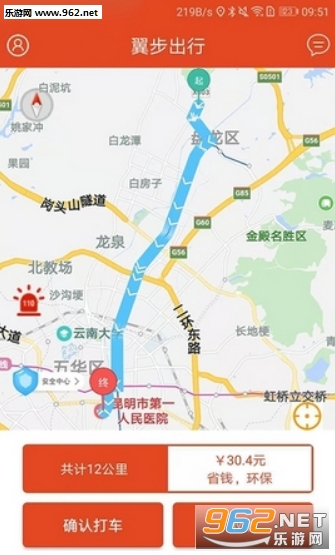3.翼步出行软件会通过智能导航规划出实时的路线,还有公里数和金额显示,让你清楚明了。