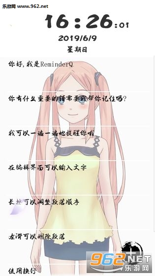 玩家将游戏运行之后会进入主界面,出现一个十分可爱的二次元女孩ReminderQ。