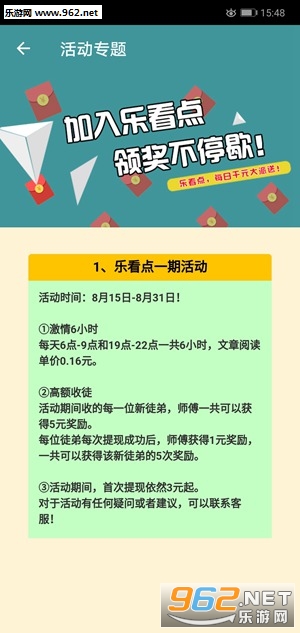 乐看点,分享即可赚钱,每天5分钟,赚钱一整天,阅读、转发、签到、收徒都有现金奖励,加入乐看点,让你转发文章挣钱不停歇。