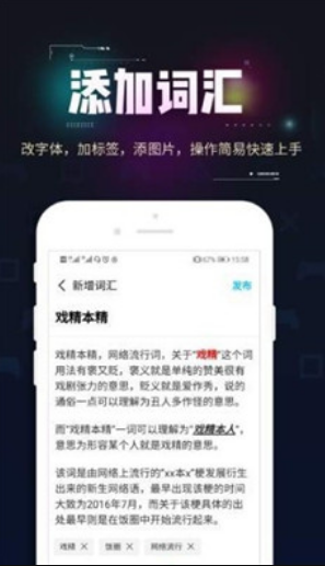 添加词汇:改字体,加标签,添图片,操作简易快速上手